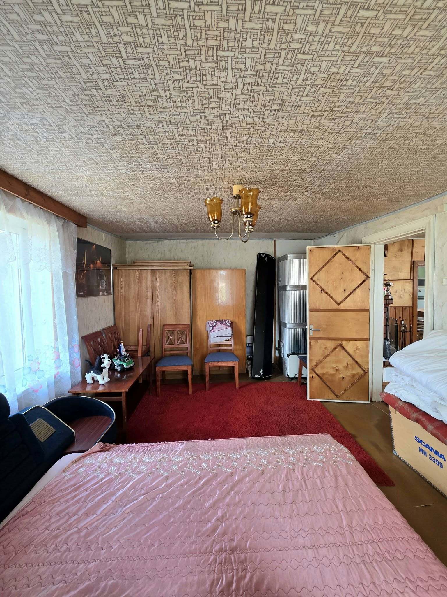 Vienstāvu koka dzīvojamai mājai ir divas atsevišķas ieejas (kā divi dzīvokļi), ir četras istabas, divas virtuves, priekštelpa, pieliekamais un veranda, bēniņi. Ir elektrība, vietējā krāsns apkure. Mājā nav sanmezgla, ir āra sausā tualete. Mājai nepieciešams remonts.