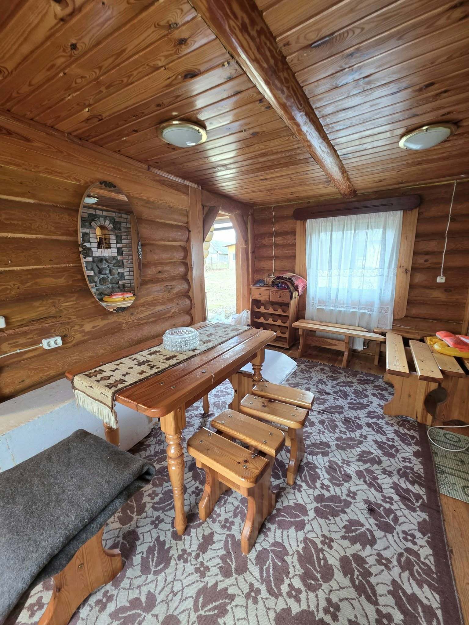 Pirts ēkai ir divi stāvi, tā būvēta 1988.gadā tās platība ir 51.8kvm. Pirts ēkai ir betona pamati, koka sienas un metāla jumts. Pirmajā stāvā ir atpūtas telpa, pirts, tualete un duša, un otrajā stāvā ir plaša atpūtas telpa - relaksācijai vai viesu uzņemšanai.