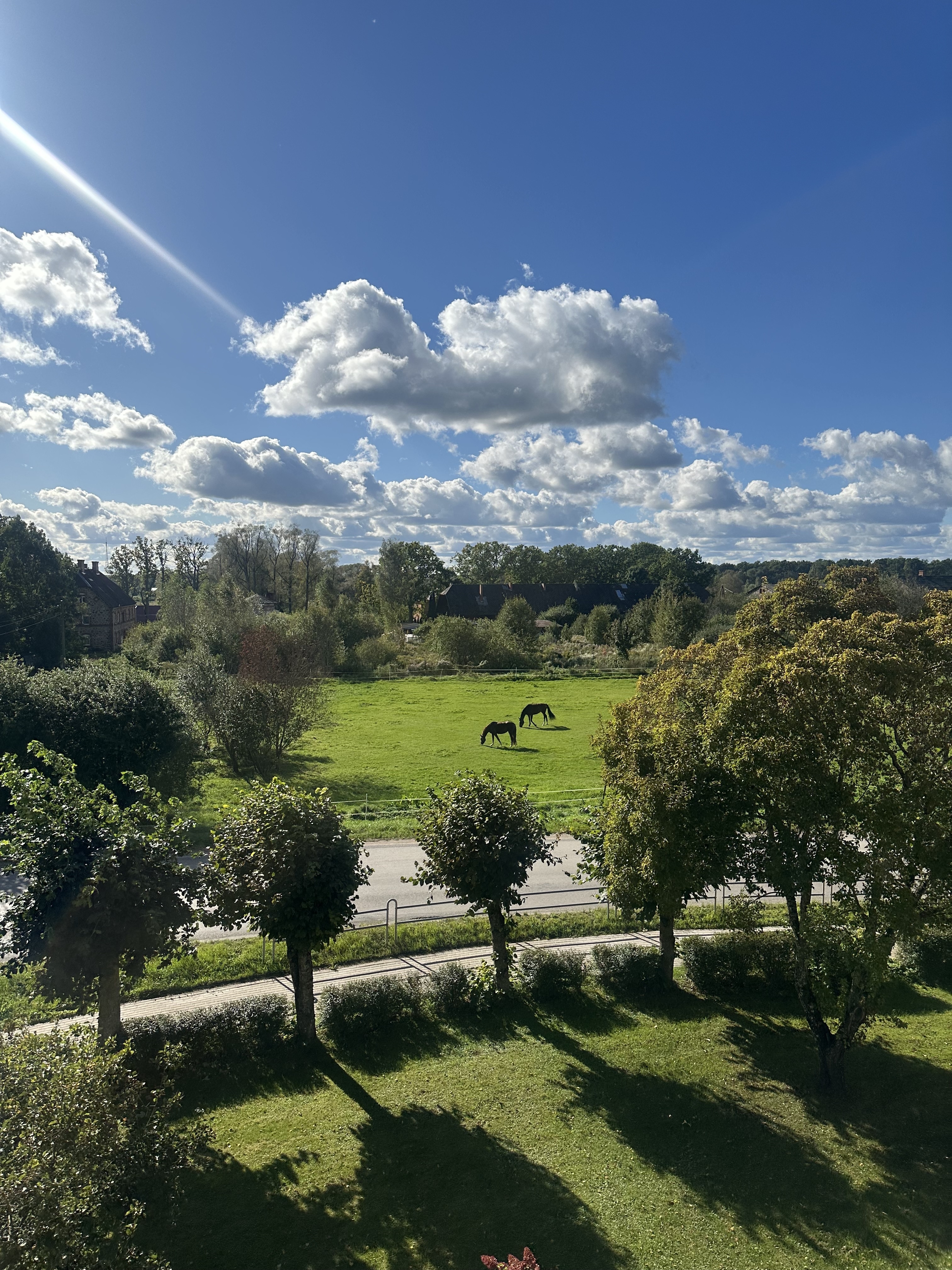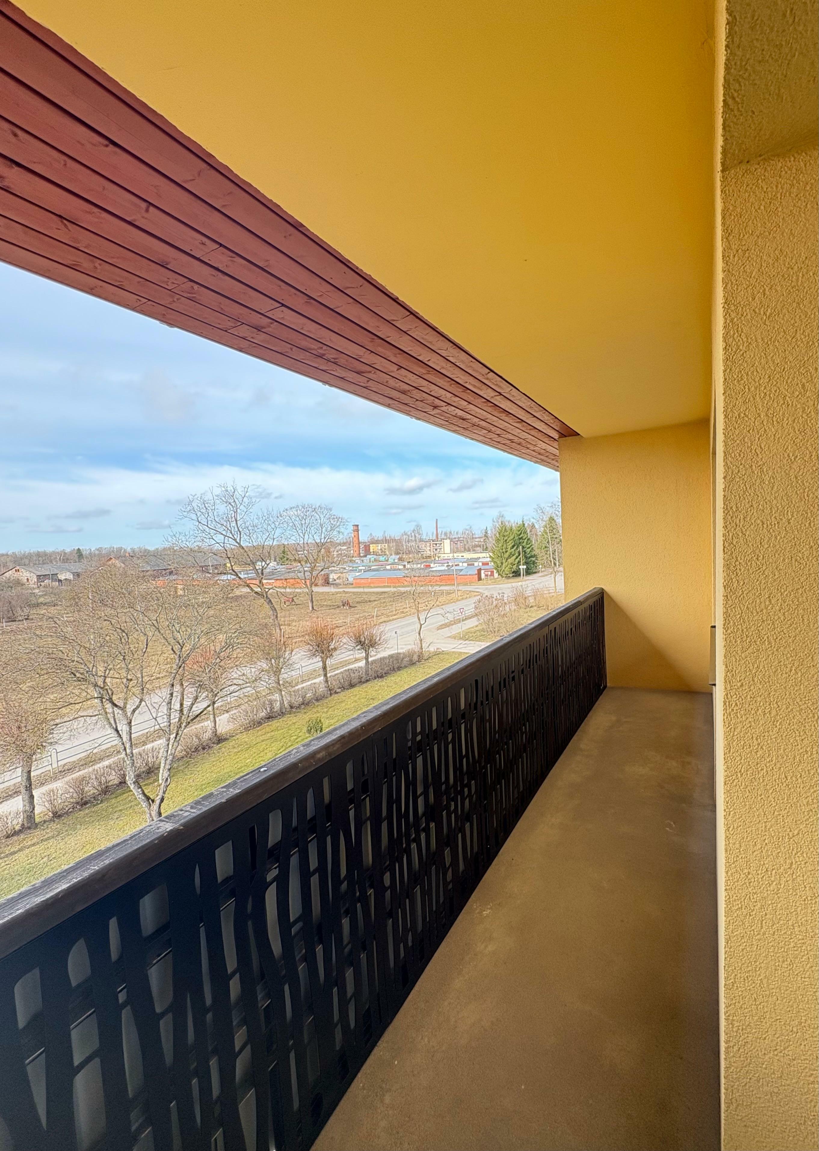 No abām istabām ir izeja uz plašu lodžiju, no kuras paveras skats uz zaļo zonu, kur mierīgi ganās zirgi – patīkams bonuss dabas un miera cienītājiem.