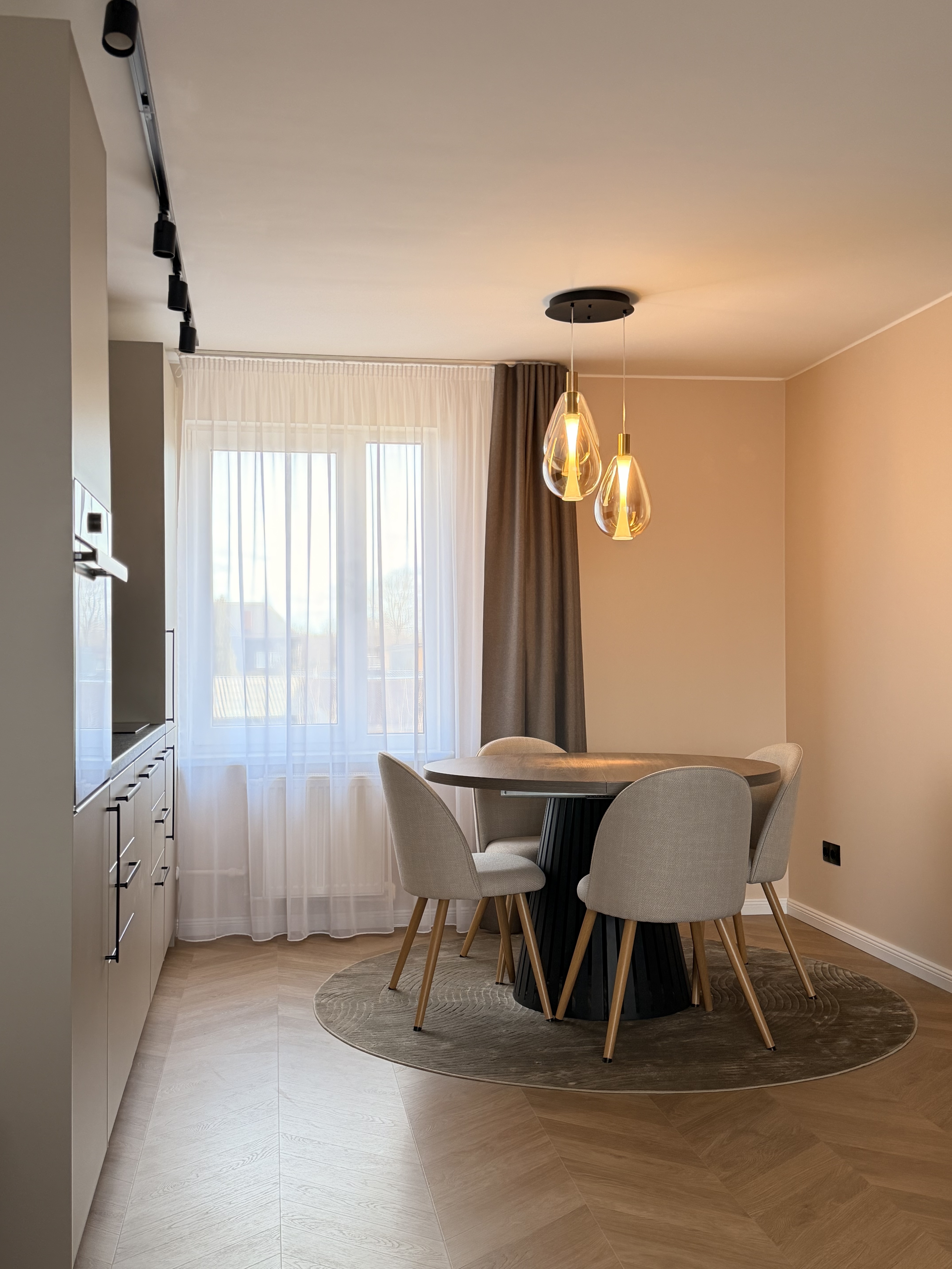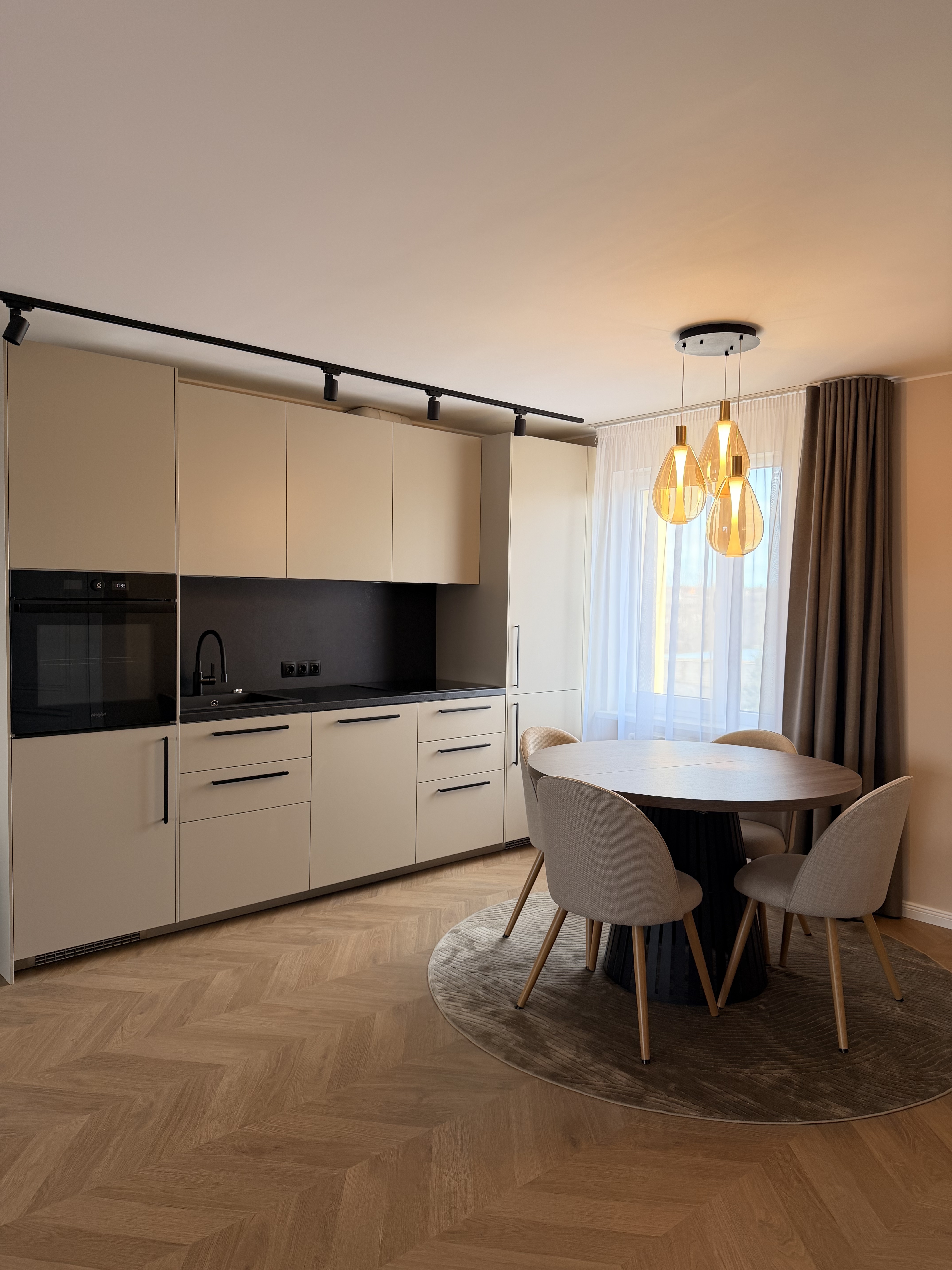 Dzīvoklī veikta kvalitatīva pārbūve, apvienojot virtuvi ar viesistabu, tādējādi radot plašu, gaišu un harmonisku dzīvojamo zonu, kur patīkami uzturēties gan ikdienā, gan uzņemot viesus. Kopējā dzīvokļa platība ir 56 m². Interjers ir mūsdienīgs un pārdomāts, ar sajūtu par brīvību un plašumu.