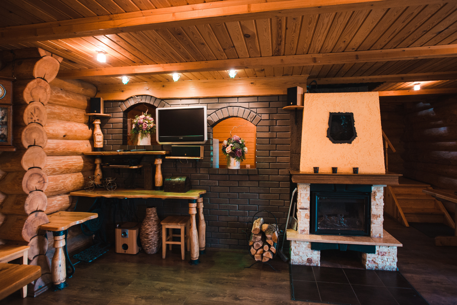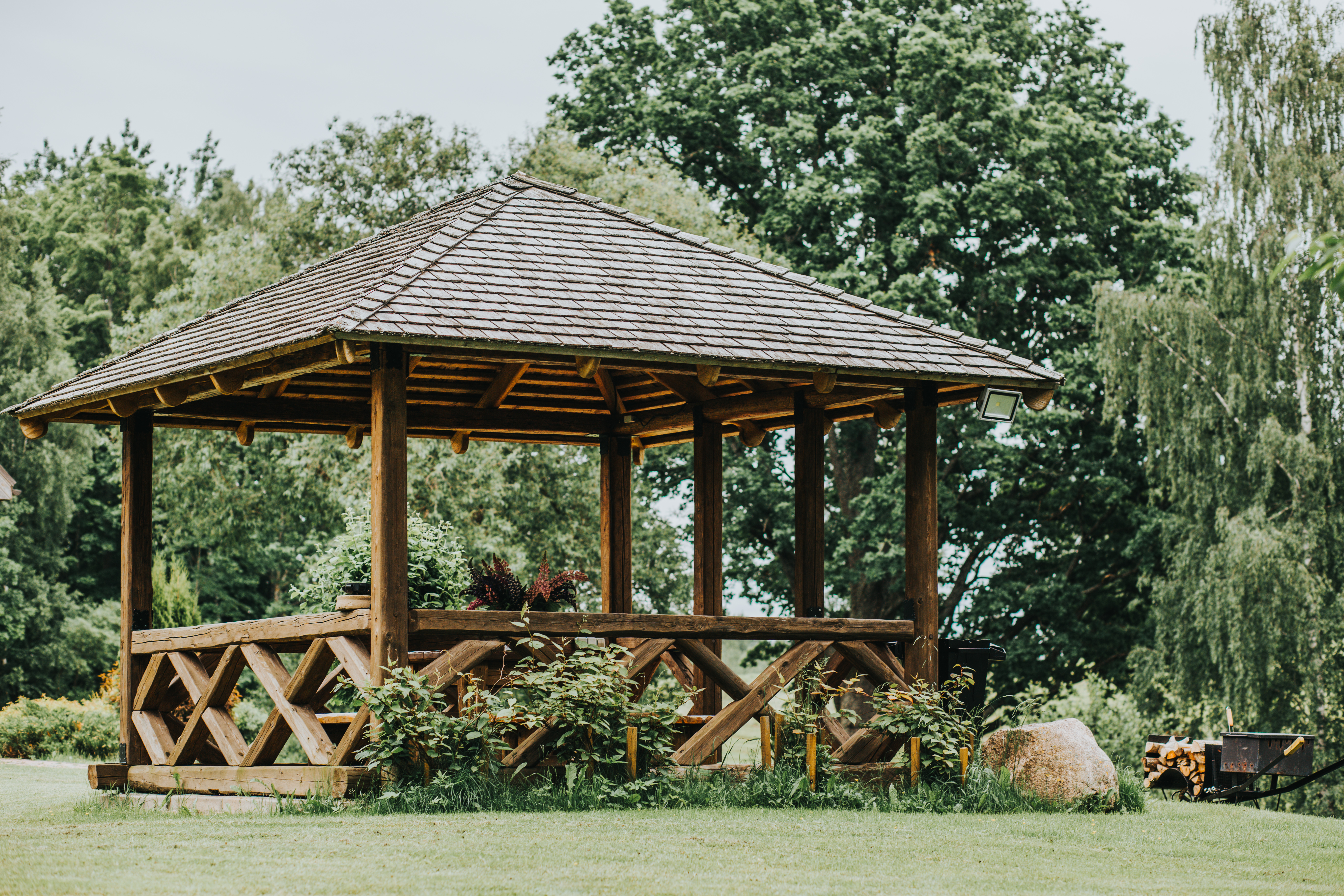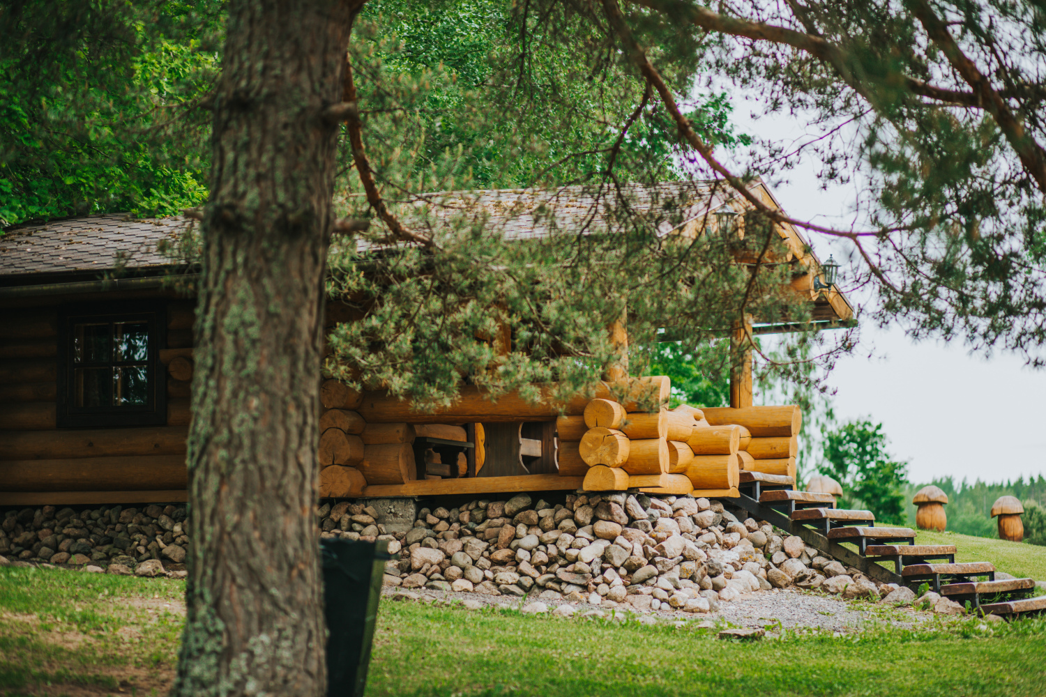 Komplekss sastāv no vairākām kvalitatīvām koka ēkām, kas būvētas un renovētas, ievērojot ilgtspēju un dabisku estētiku. Šeit atrodas lieliska pirts ēka, plaša pasākumu/saimniecības ēka ar kopējo telpu platību 186,6 m², vairākas guļbūves atpūtai (booking’am jeb īstermiņa īrei), kā arī sarga māja un lapenes. Kopējā ēku platība sasniedz 559,5 m². Ēkas ir labā tehniskā stāvoklī, aprīkotas ar elektrību, ūdeni no artēziskās akas un lokālajām komunikācijām. Vide ir daļēji bruģēta un labiekārtota, ļaujot izmantot īpašumu nekavējoties, bez papildu ieguldījumiem.