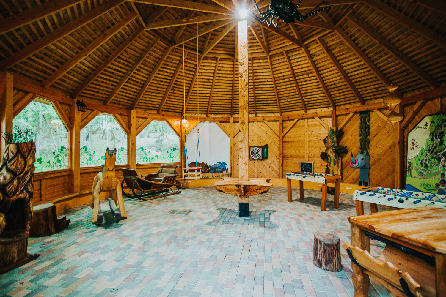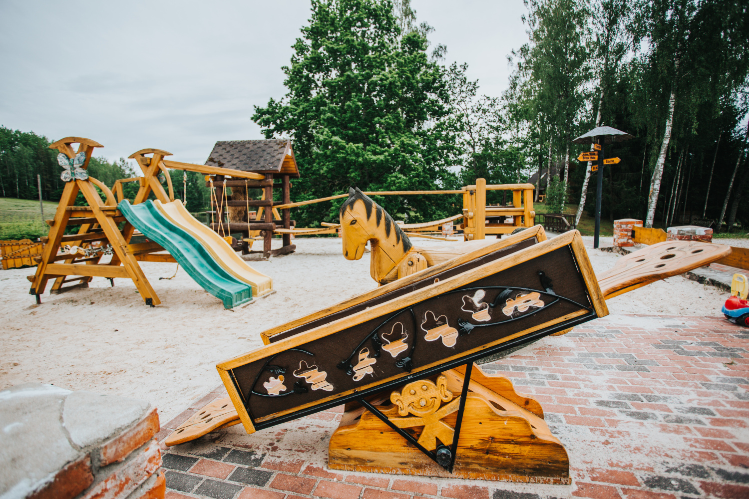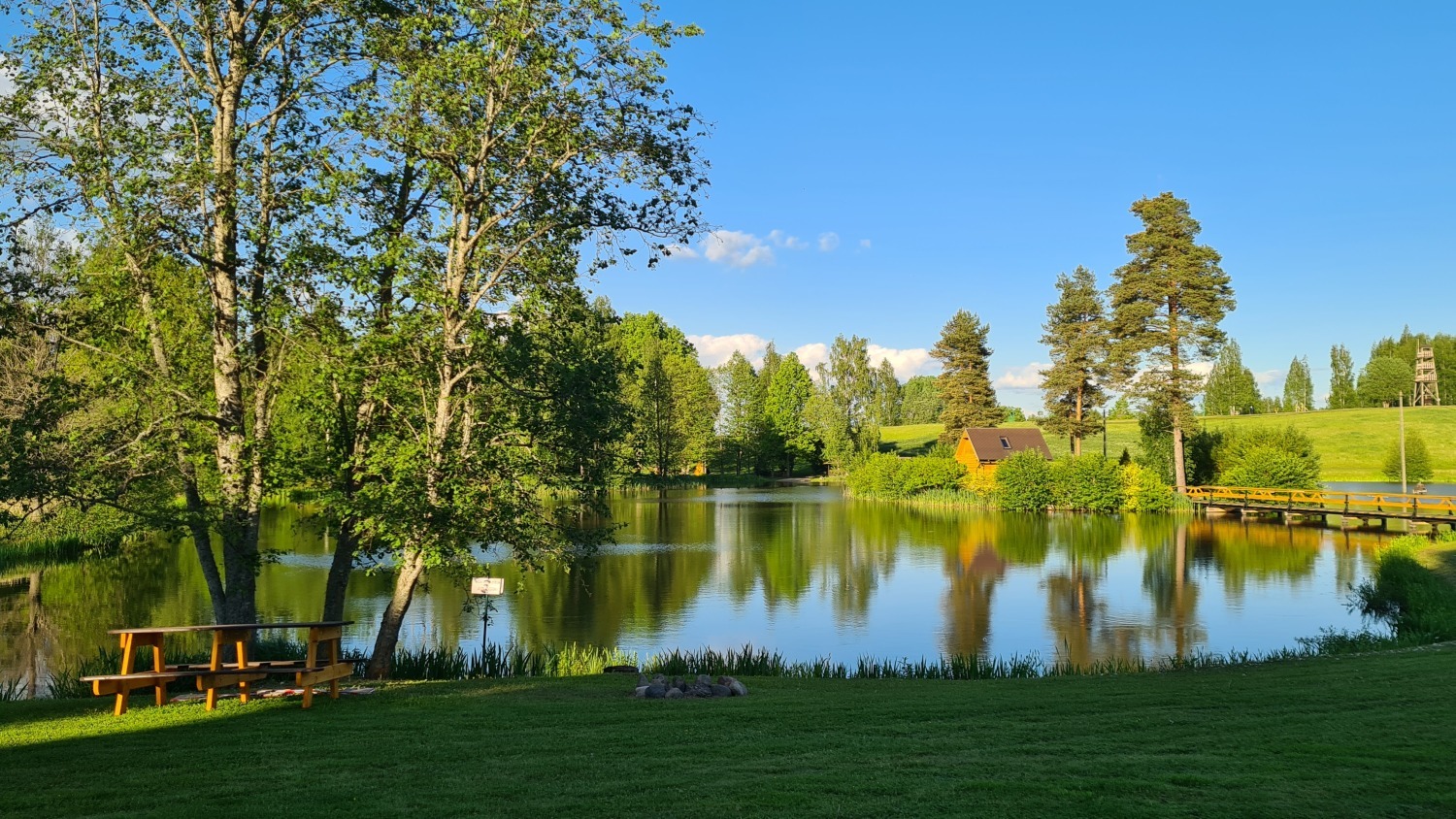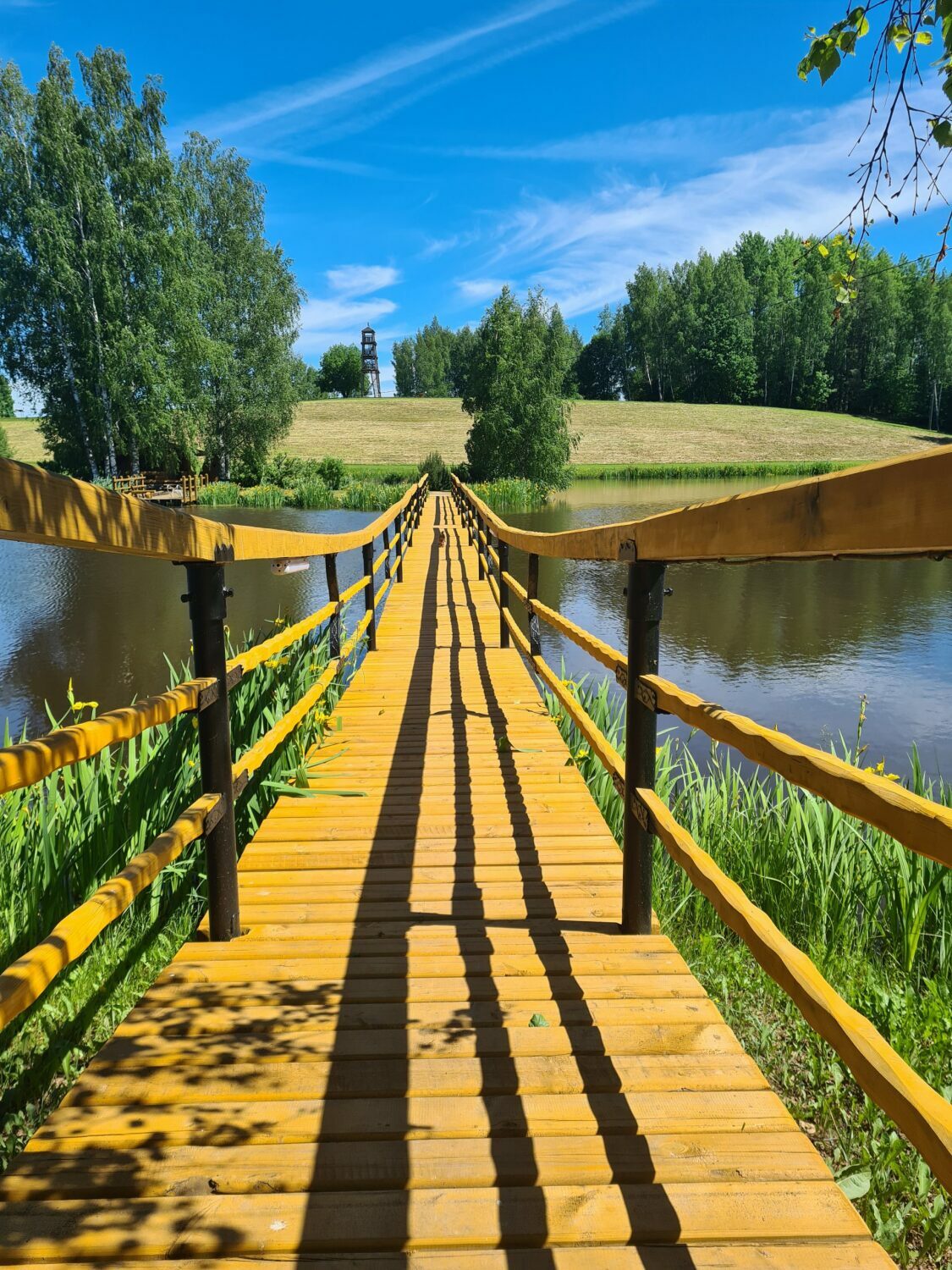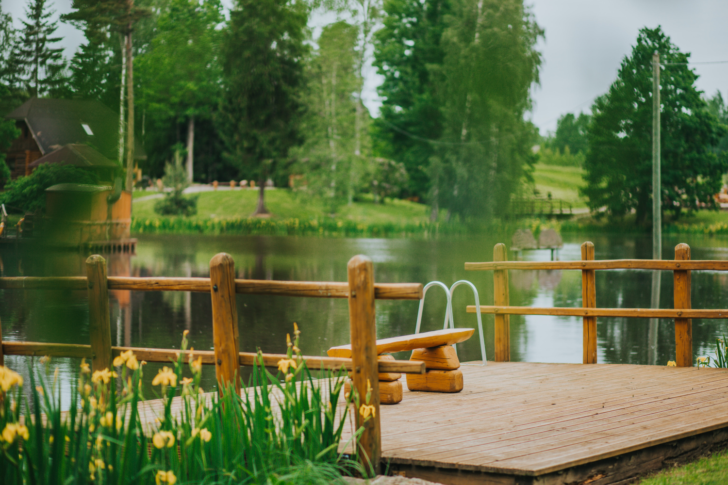 Teritorijā izveidota plaša aktīvās atpūtas infrastruktūra — futbola, volejbola un strītbola laukumi, bērnu rotaļu laukums, labas kvalitātes gājēju tilti, kas savieno salas, kā arī 12 metrus augsts skatu tornis, no kura paveras iespaidīgi panorāmas skati. Šie elementi ir tehniski kvalitatīvi un kalpo gan praktiskām vajadzībām, gan vizuālai pievienotajai vērtībai. Dabas tuvums ir sajūtams ik uz soļa — īpašumā ir gan ūdens, gan reljefa līmeņi, gan plašas zālienu zonas, kas piemērotas lieliem pasākumiem.