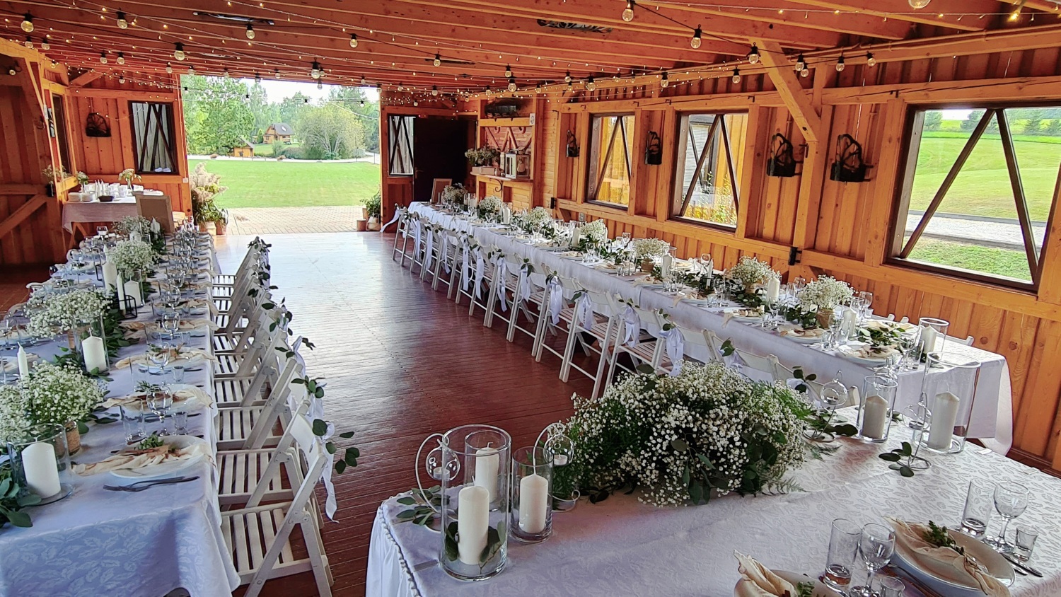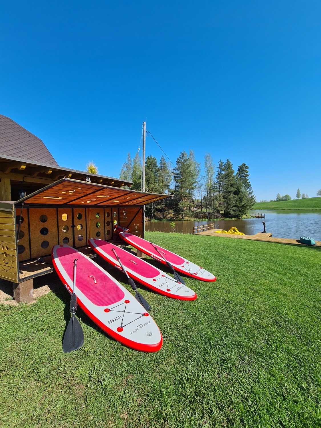 “Trīssaliņas” ir īpašums ar izteiktu identitāti. Šeit apvienojas ūdens, mežs un sakārtota infrastruktūra, kas rada vidi, kur vienlaikus iespējama gan klusā atpūta, gan sportiskas aktivitātes, gan svinību organizēšana. Īpašuma struktūra ļauj radīt dažādas atsevišķas zonas — naktsmītnēm, rituāliem, sportam, bērniem, pasākumiem un privātai atpūtai.