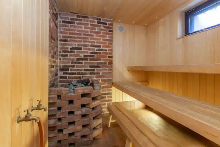 Pirmajā stāvā atrodas garāža, lauku virtuve ar malkas krāsni, tualete, duša un telpa malkas uzglabāšanai. Otrajā stāvā ierīkota atpūtas telpa, kur iespējams pavadīt laiku ar draugiem vai vienkārši baudīt mieru. Telpa apsildāma ar malkas krāsni.