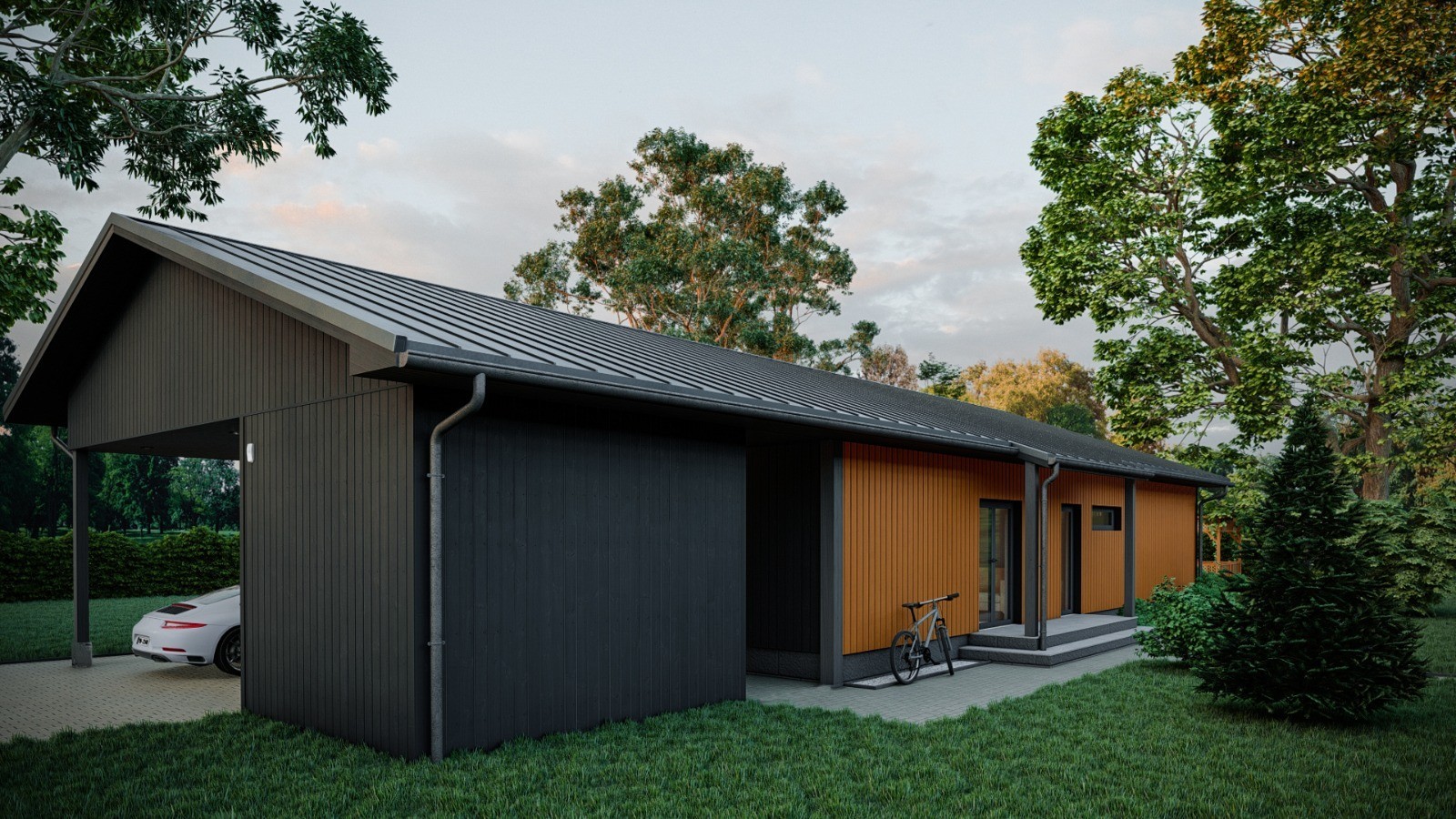 Gatavs projekts paredz jaunas vienstāvu privātmājas skandināvu un modernā minimālisma stilā izgatavošanu 4 mēnešu laikā no būvniecības uzsākšanas brīža. Privātmājas plānojums ir funkcionāls un pārdomāts, tas paredz 5 istabas, no kurām vienu iespējams pārvērst par darba istabu, 2 sanmezeglus, 3 guļamistabas, atvērtā tipa virtuves konceptu, kurā virtuve “satiekas” ar viesistabu, kā arī plašu terasi ar lieliem logiem, auto nojumi, zem kuras vieta būs automašīnai un āra palīgtelpu dārza piederumiem. Viena no guļamistabām ir saplānota ar atsevišķu sanmezglu un atsevišķu telpu apģērbam.