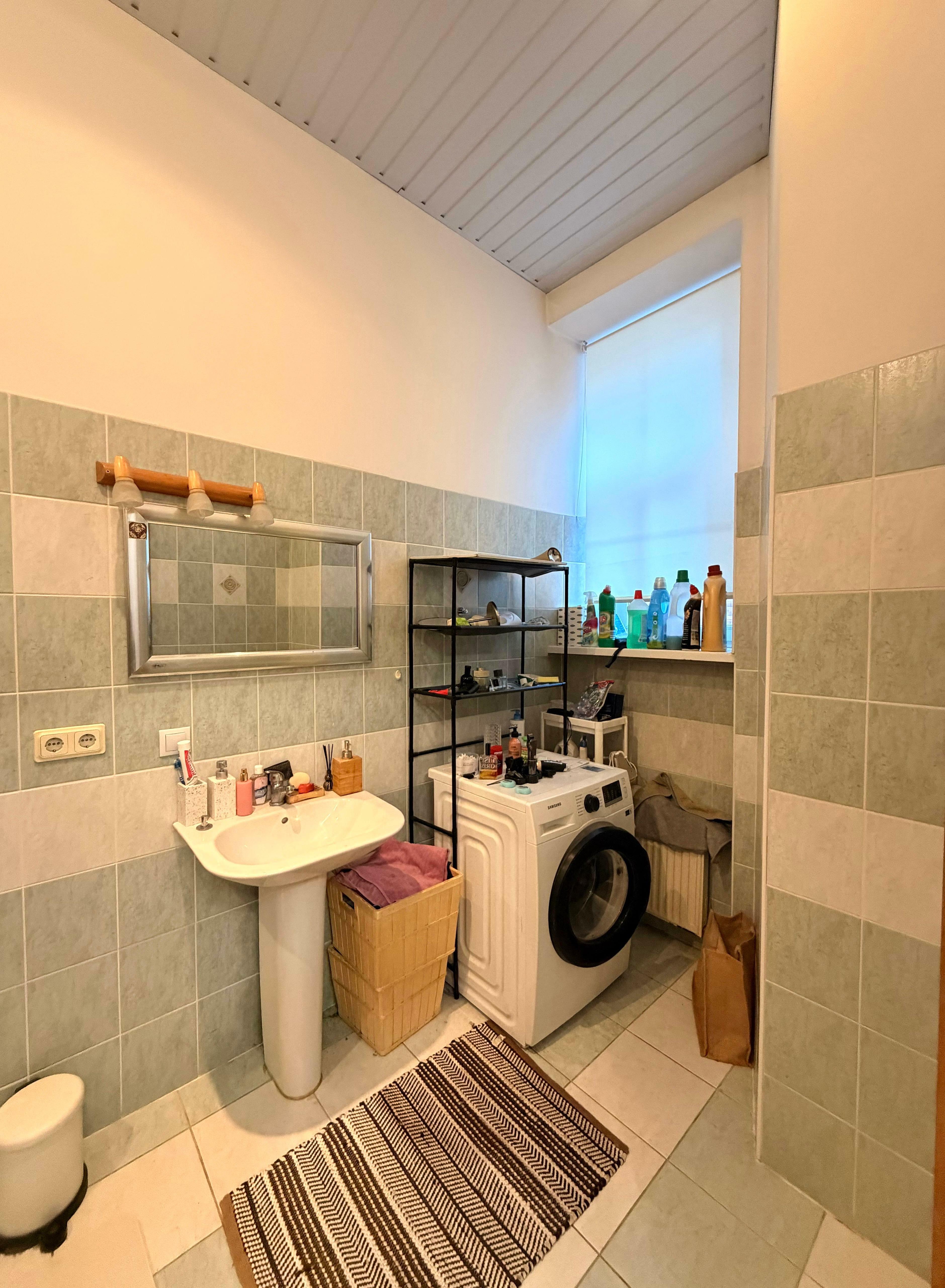 Dzīvoklī ir divas sanitārās telpas – viena plaša vannas istaba un atsevišķa tualete, kas nodrošina papildu komfortu ikdienā.