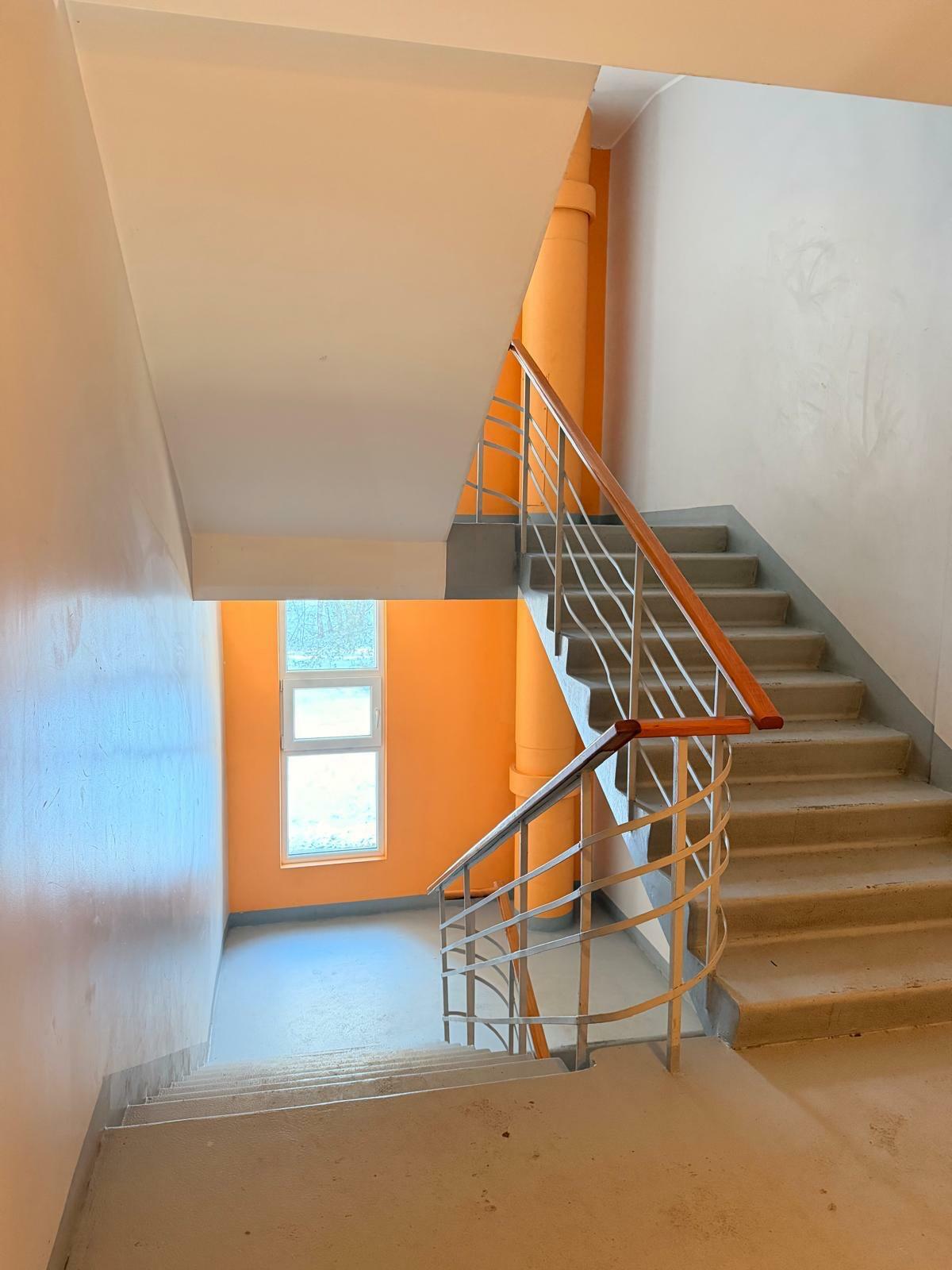 Kāpņu telpa ir kopta un tīra, dzīvoklim pieejams pagrabs, kā arī pie mājas ir vieta automašīnas novietošanai.